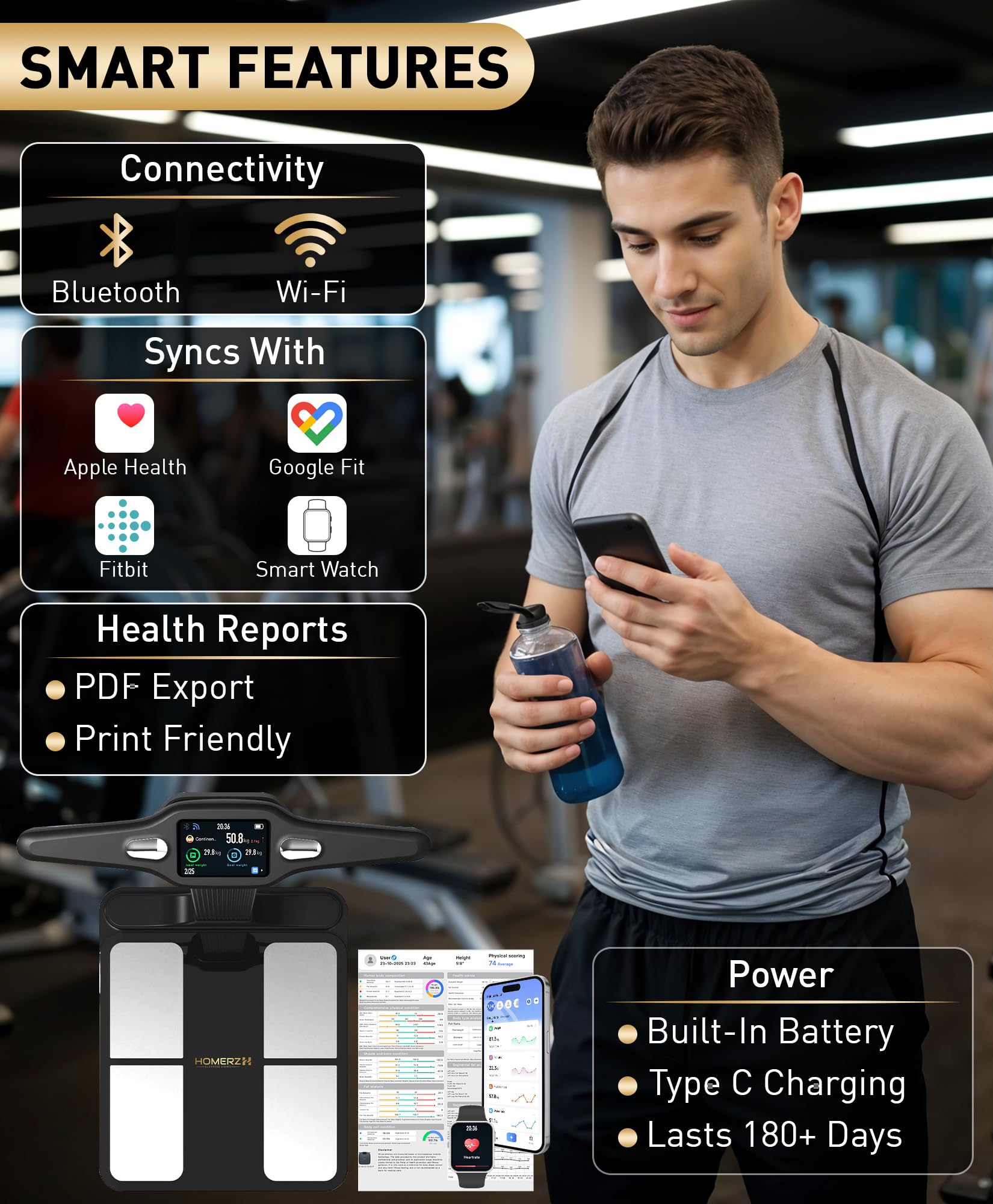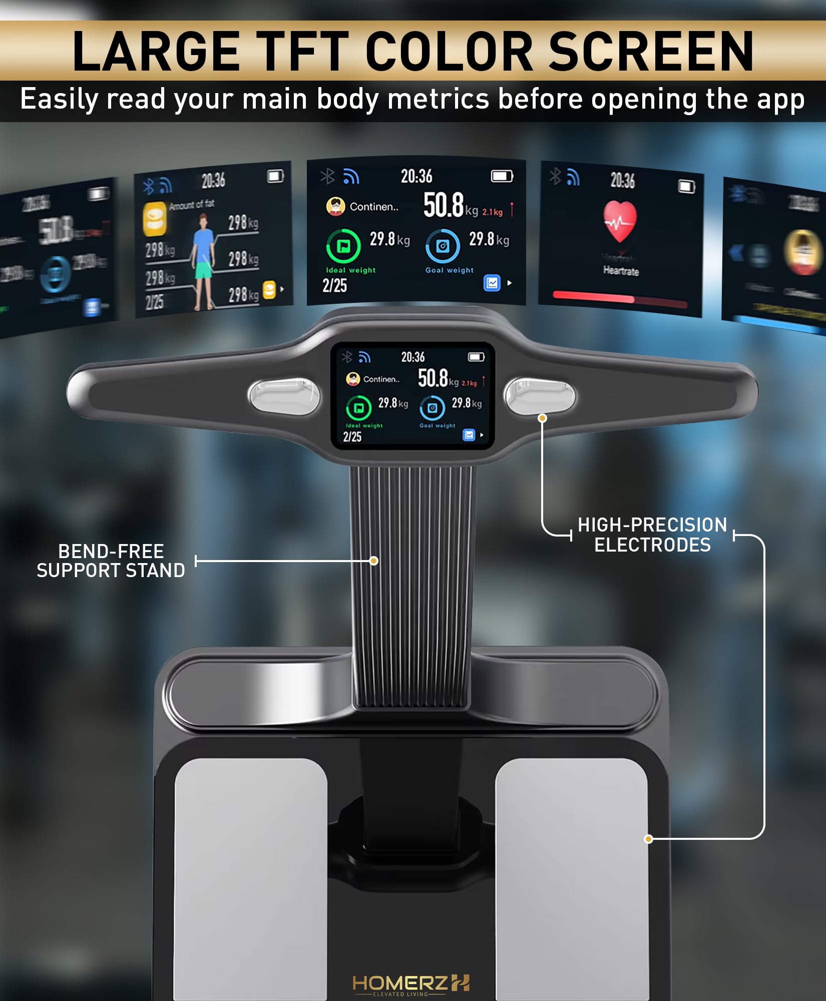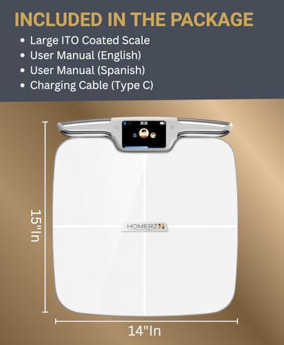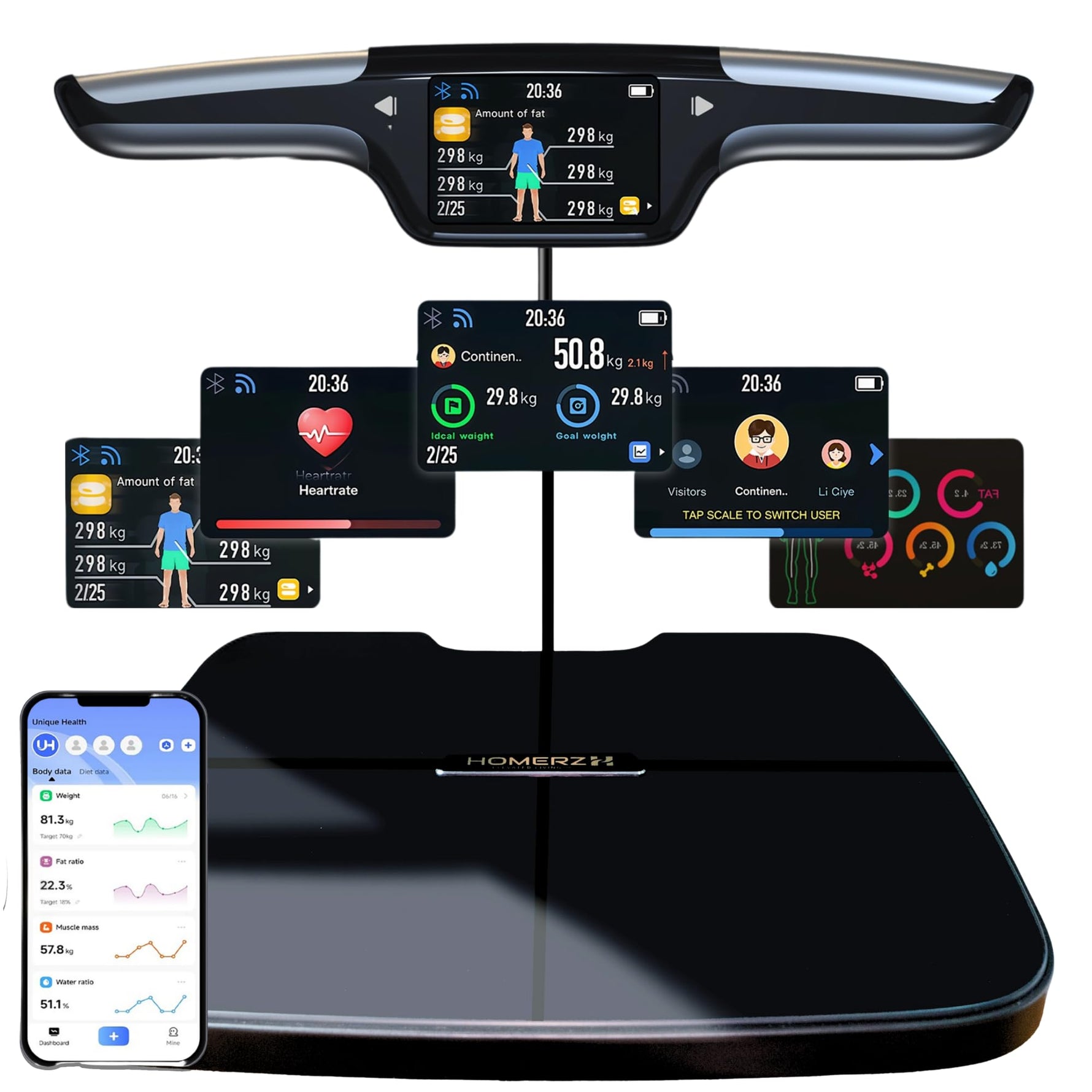 Homerz Body Fat Scale – Smart Scale with BMI, Body Fat, Muscle Mass, FSA/HSA Eligible Body Composition Scale with Digital Weight Tracking, Body Scan Scale with Handle, Body Scanner, Biometric Analyzer