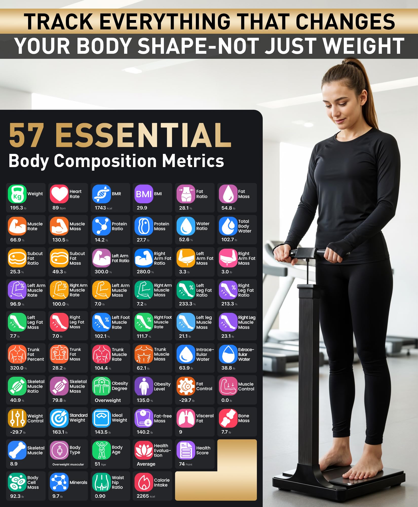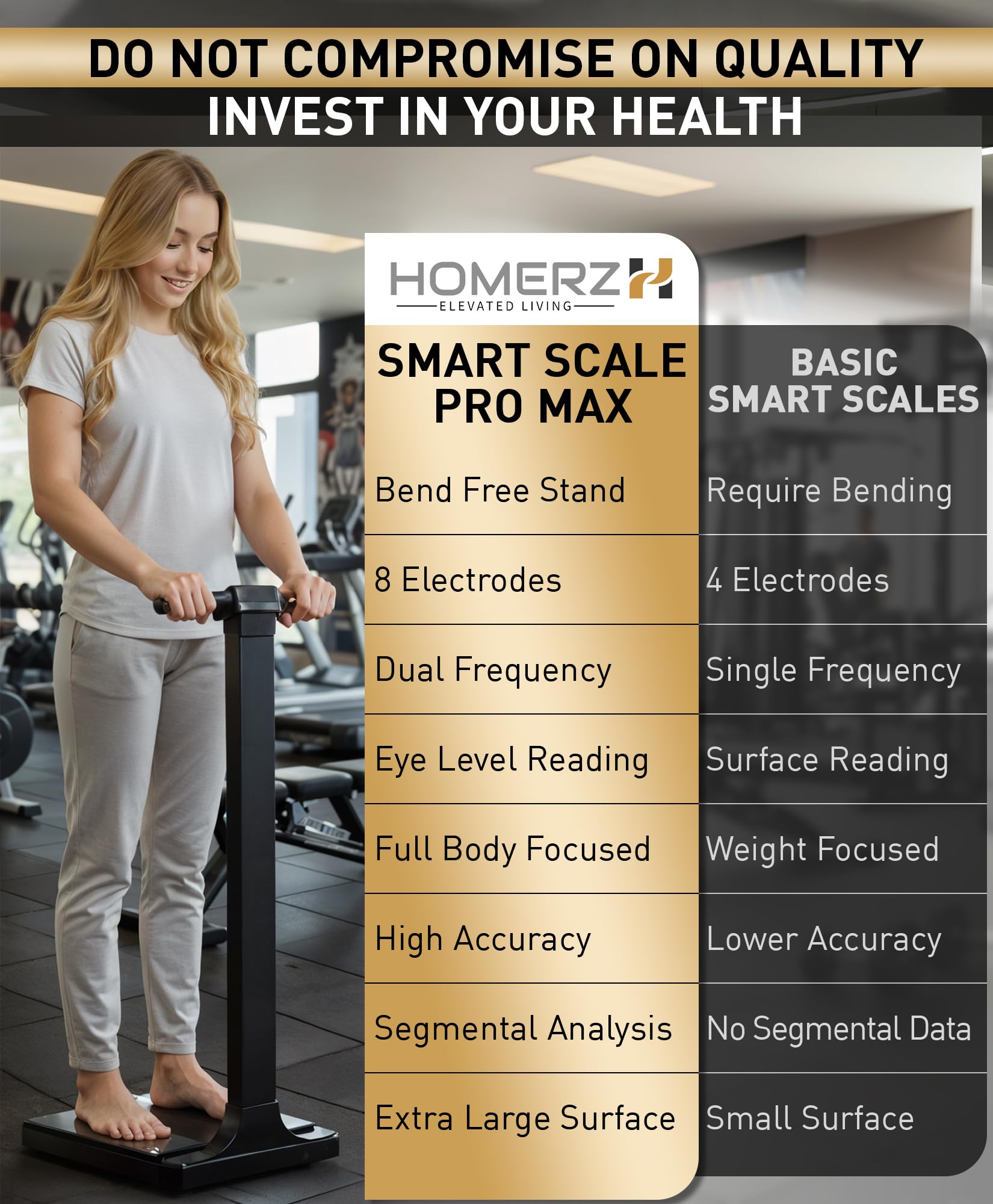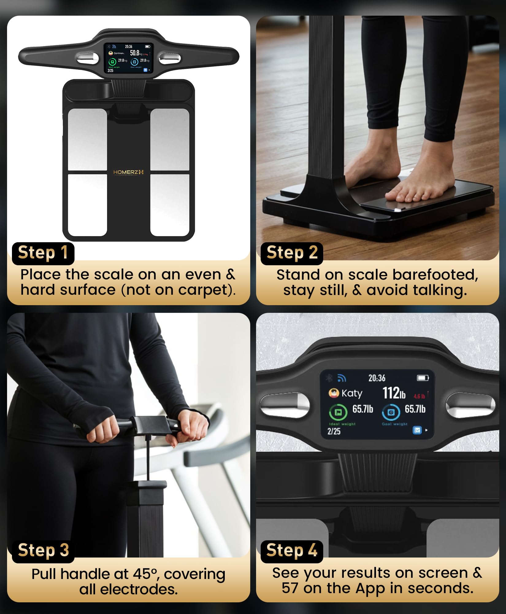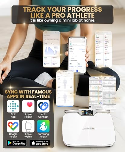 Homerz Body Fat Scale – Smart Scale with BMI, Body Fat, Muscle Mass, FSA/HSA Eligible Body Composition Scale with Digital Weight Tracking, Body Scan Scale with Handle, Body Scanner, Biometric Analyzer