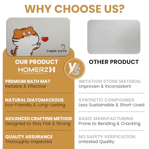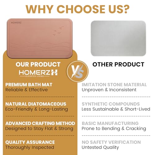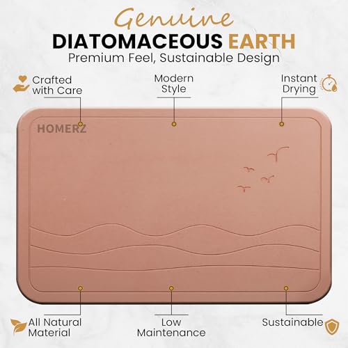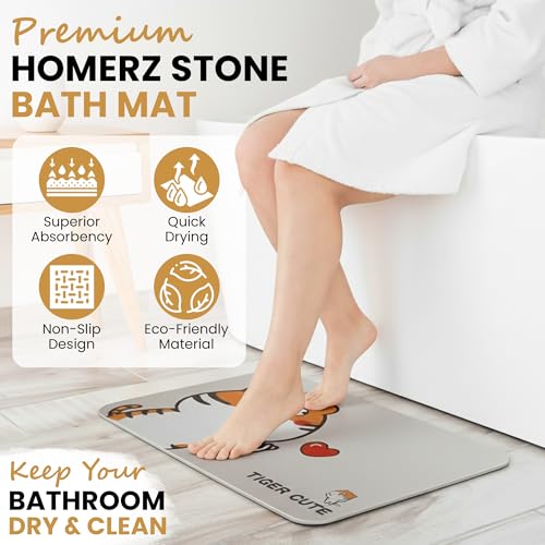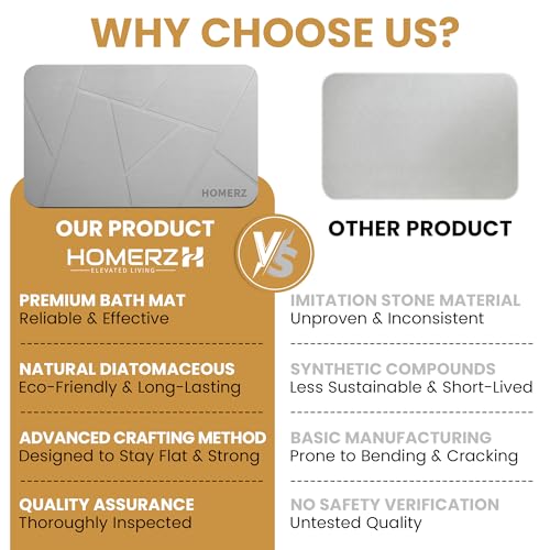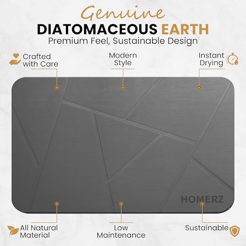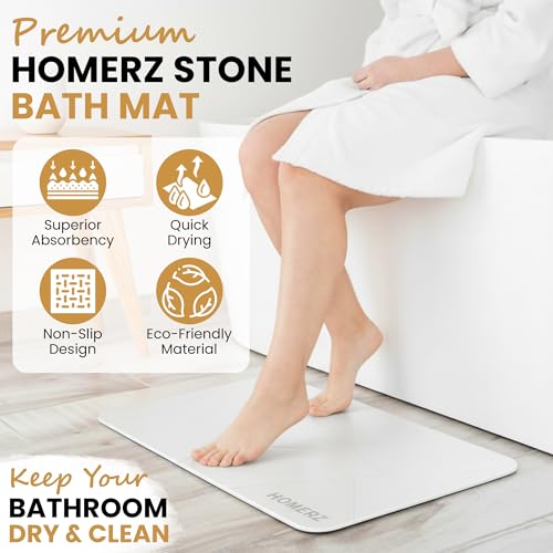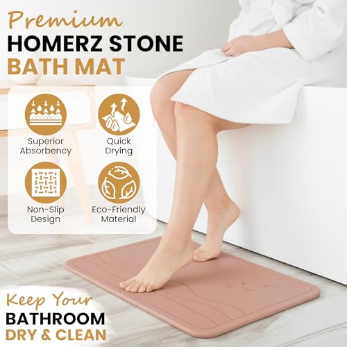 Homerz Stone Bath Mat โ Premium Diatomaceous Earth Bath Mat, Rock Absorbent Bath Mats for Bathroom, Modern Stone Drying Mat, Shower Mat Outside Shower, Tapetes para Baรฑo 23.6"x15.3"